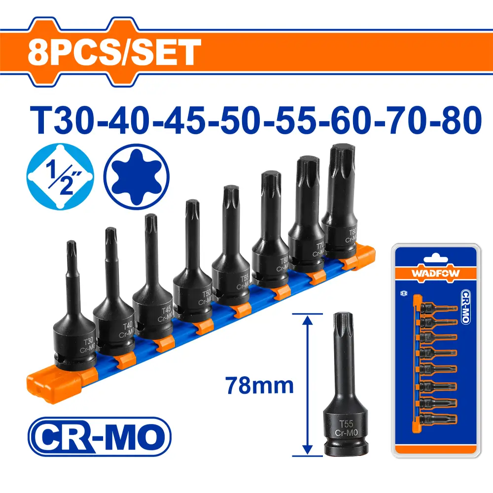 8 Pcs Torx bit socke: T30-T40-T45-T50-T55-T60-T70-T80